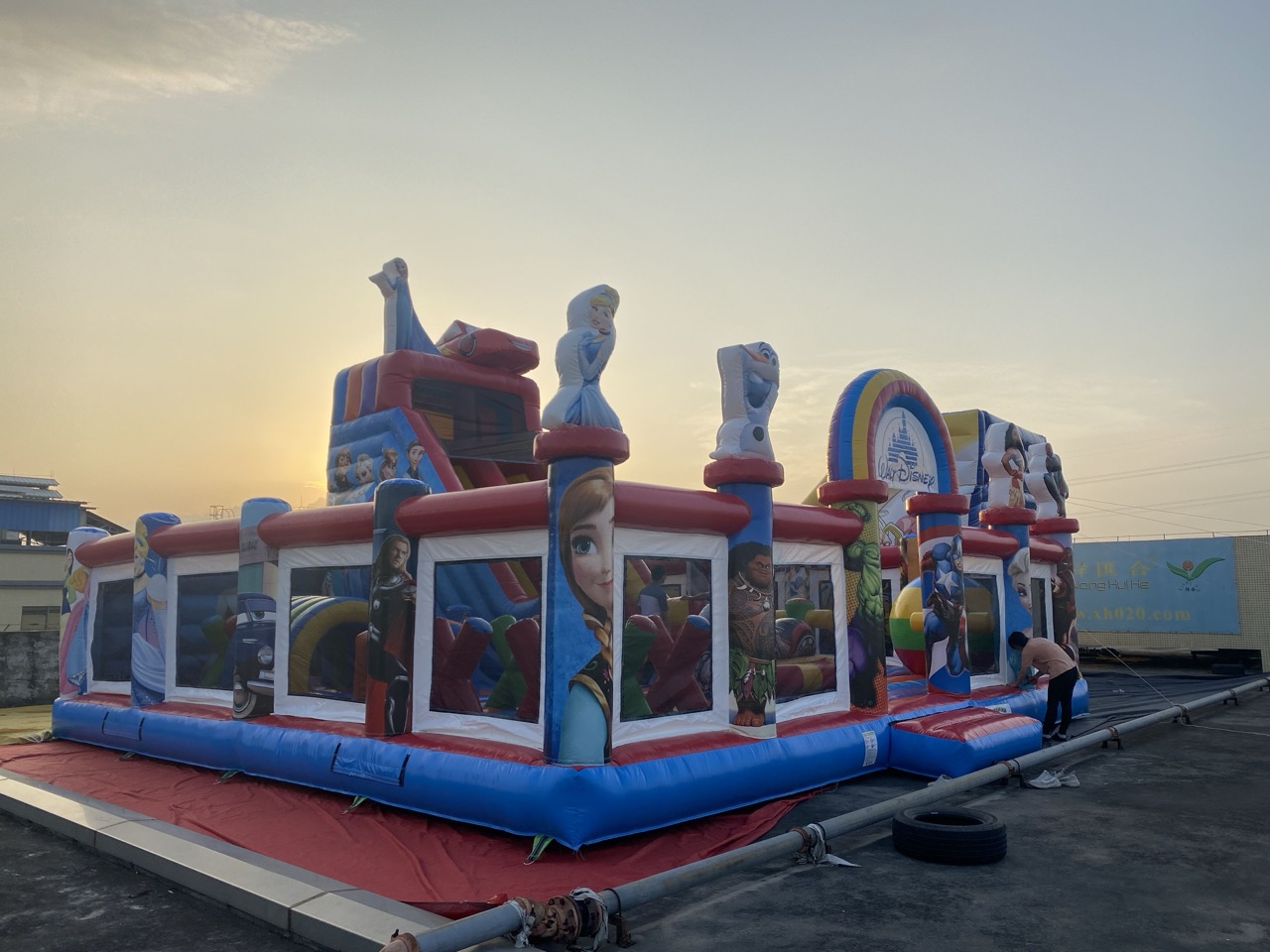 迪士尼主题充气城堡,精选加厚环保 PVC,抗撕裂、气密性强,充气后造型高度还原经典场景。适配儿童乐园、商业广场、户外营地,可开展童话冒险、亲子互动。充气便捷,快速营造沉浸式嬉乐空间;支持定制,满足主题需求。用它点燃孩子童话梦,每一次玩耍都是 “迪士尼奇妙之旅” 。