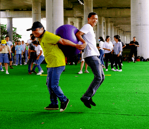 参与者自由组合或随机抽签两两成组,确定背负者与协助,每组需在规定时间内,共同协作完成设置的任务,如穿越障碍赛道(赛道上设置有跨栏、绕桩等障碍)、完成指定动作(如原地转圈后准确前行等)、按要求搬运物品等。以完成任务的用时长短、任务完成的准确性等作为评判标准。用时最短且任务完成质量高的小组获胜。