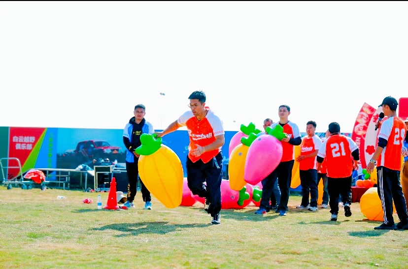 6人/组/轮,每组有6个充气萝卜,4组不同颜色的萝卜被种在不同的充气萝卜坑内,比赛开始后,四组队员从4个方向跑向充气萝卜田,把属于本组颜色的萝卜拔出带回来。直到所有本组颜色的所有萝卜拔完为止。如果拔错其它组颜色的萝卜,成绩归其它组所有。
