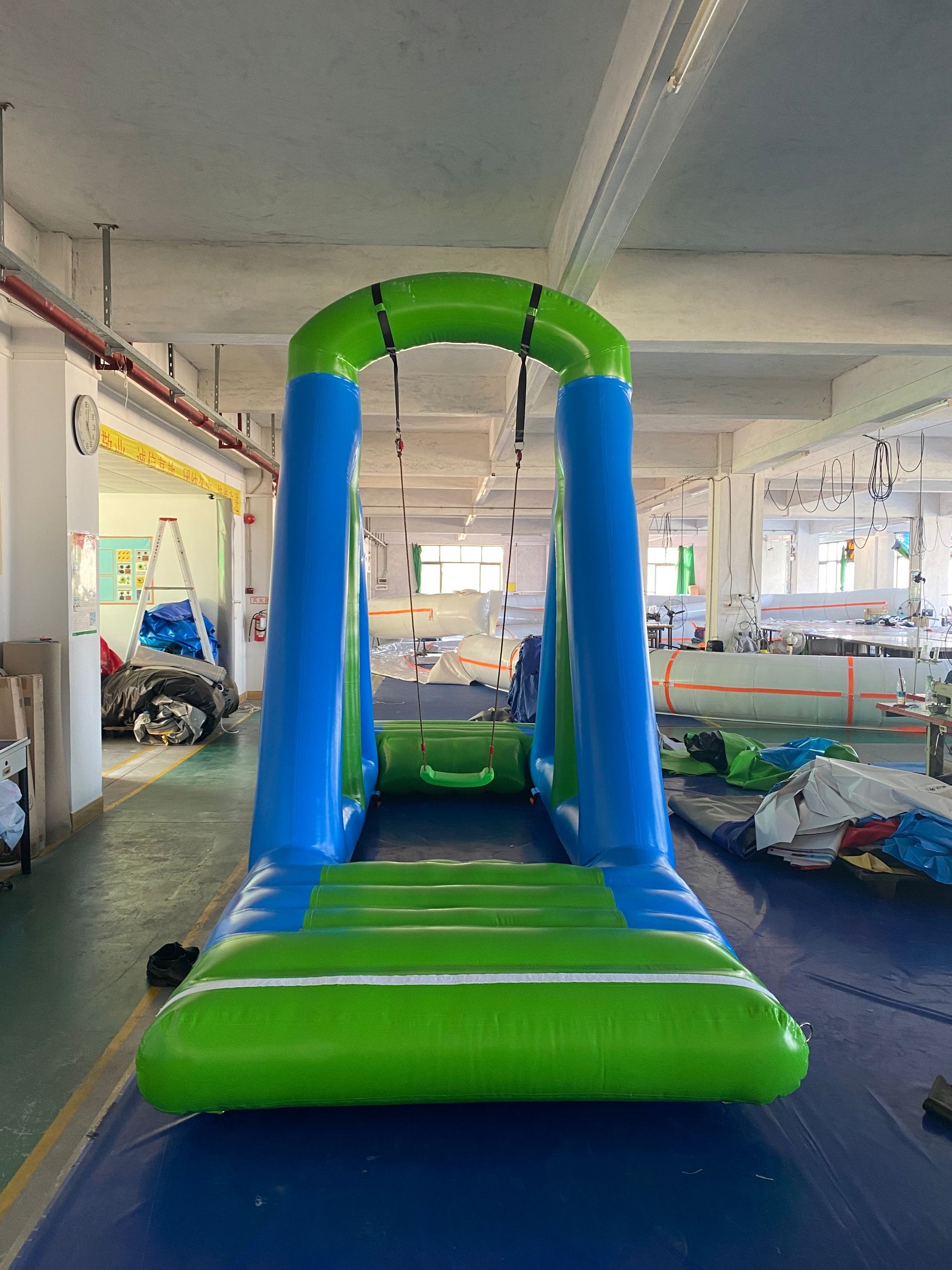 本充气水上秋千,专为水上嬉水场景设计。采用加厚环保 PVC 材质,抗撕裂、气密性强,保障长期稳定使用。集成秋千荡漾、滑梯冲刺功能,适配亲子互动、团队拓展、景区运营等多元场景。充气便捷,快速搭建 “移动水上乐园”;色彩鲜明、结构稳固,兼顾趣味与安全。支持尺寸、功能定制,助力打造专属水上欢乐项目,用双玩法点燃嬉水热情 。