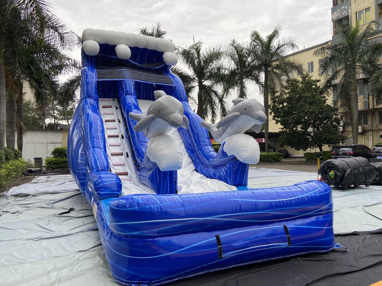 巨型海豚充气水滑梯开售|亲子水上冒险,解锁酷爽玩水新体验
