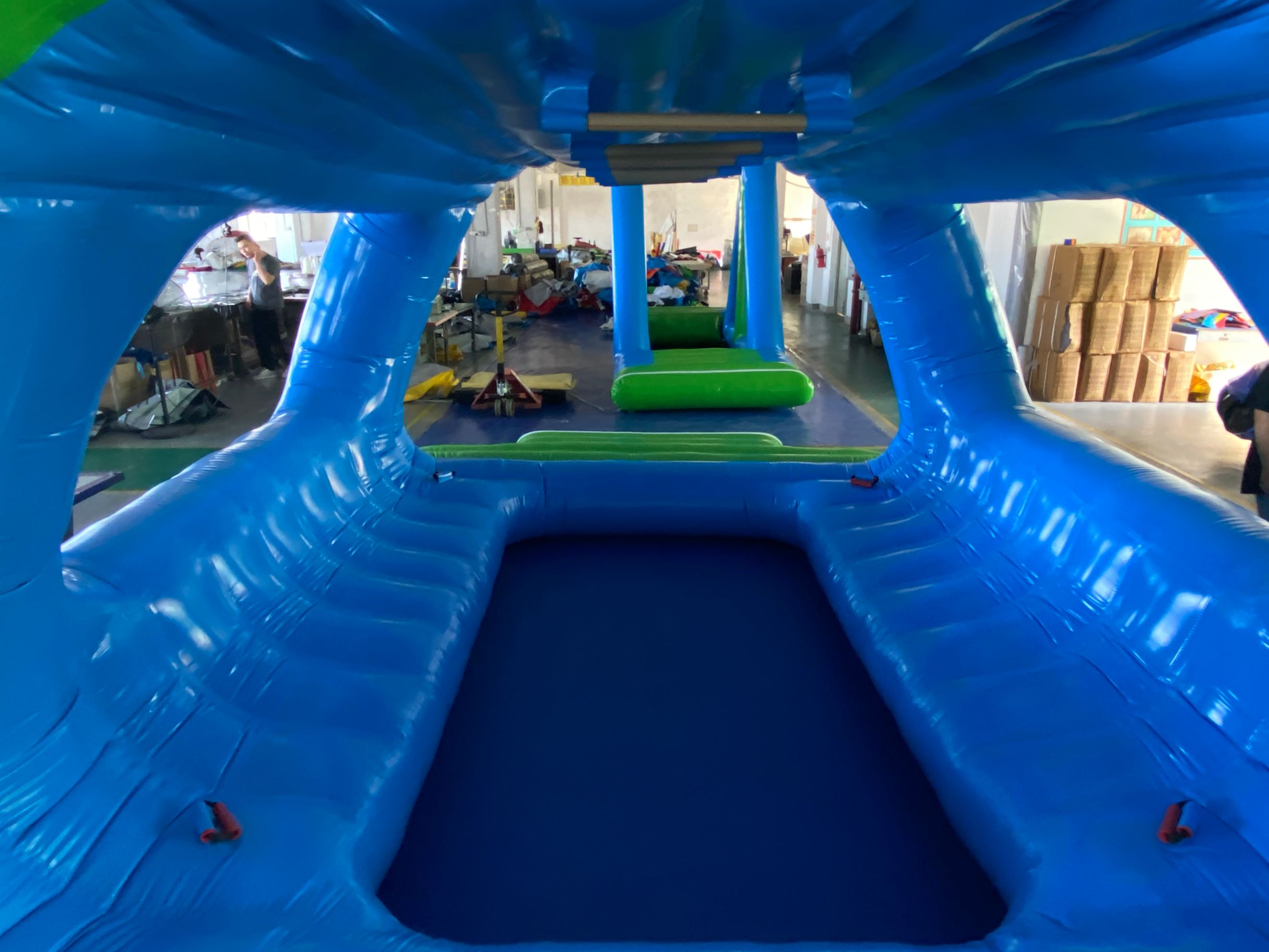 专业水上闯关游戏道具厂家,推出大型充气水上乐园设备。以绿蓝撞色打造醒目外观,集成滑梯、水池、攀爬区等多元功能,适配亲子乐园、商业活动、景区夏季运营等场景。选用加厚耐磨环保 PVC 材质,充气快速、结构稳固,既满足家庭亲子嬉水互动,也可作为团队水上团建道具,为夏季游乐注入趣味与活力,支持定制化设计